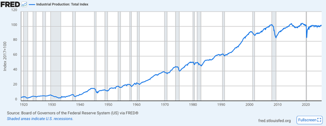 U.S. industrial production has remained stable across multiple tariff cycles. This index does not measure tariffs directly, but it provides a directional signal that domestic manufacturing activity—and therefore demand for industrial real estate—has held steady.